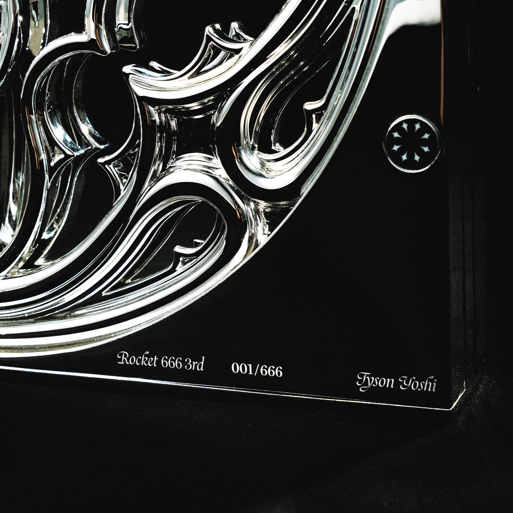 Introducing the third edition of Tyson Yoshi’s ROCKET 666 Vinyl Box Set — a collectible reimagined as a 3D sculptural art piece, inspired by the intricate forms of Gothic cathedral windows and the sleek lines of vintage automotive rims.
