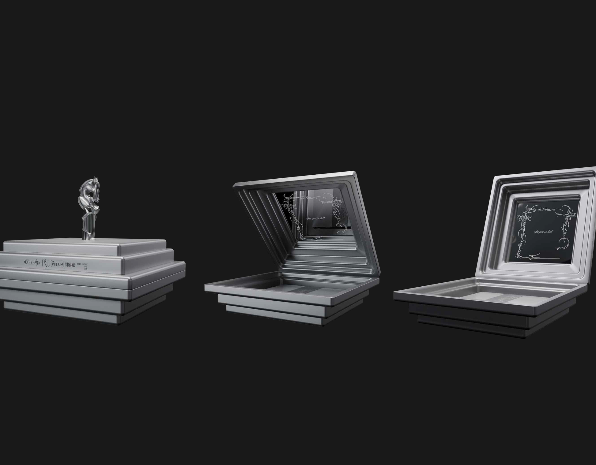 Concert prop elements are integrated into the box’s structure, transforming it into a sculptural relic from the stage itself, not just packaging, but a portal back to the performance.